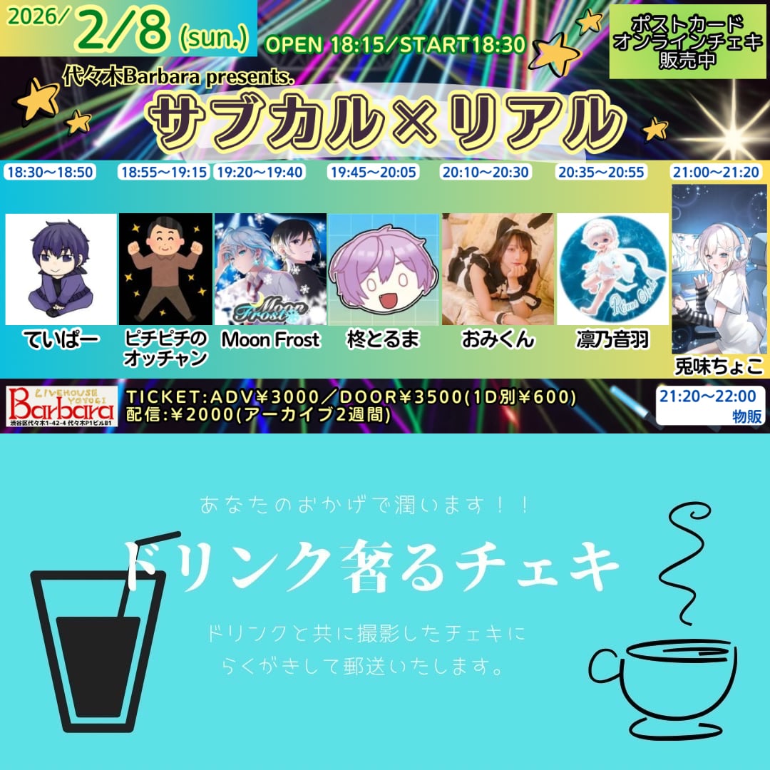 事前にご購入頂いた分だけ当日該当の出演者がドリンクを飲むことが出来ます☆