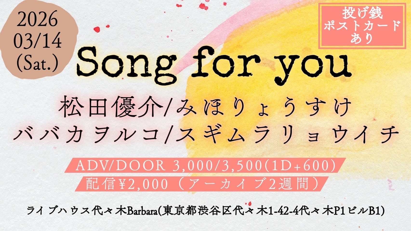 代々木Barbara presents.「Song for you」