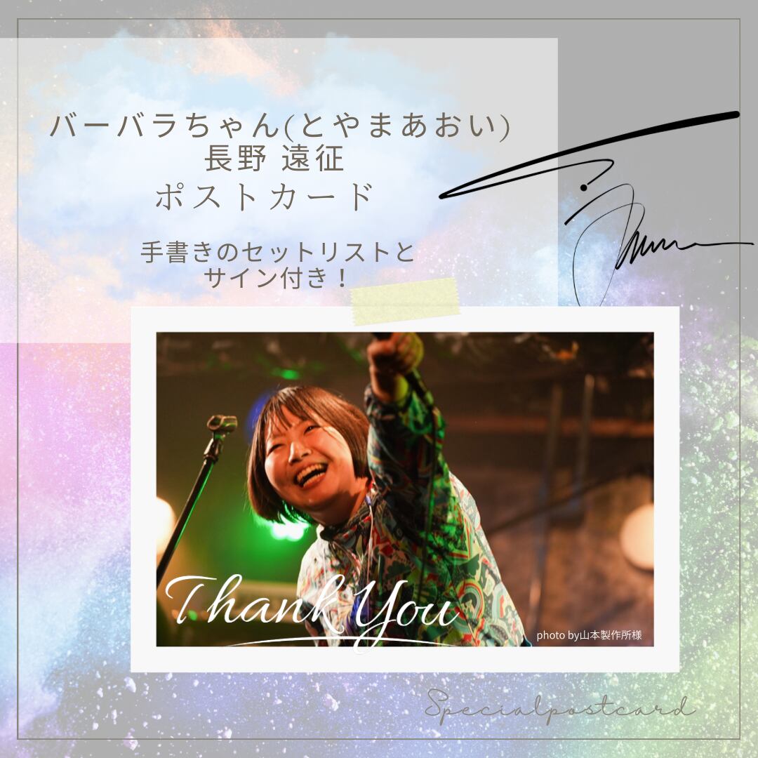 【岡山/広島/大阪遠征支援】バーバラちゃん(とやまあおい)【ポストカード、手書きのセトリとサイン付き】