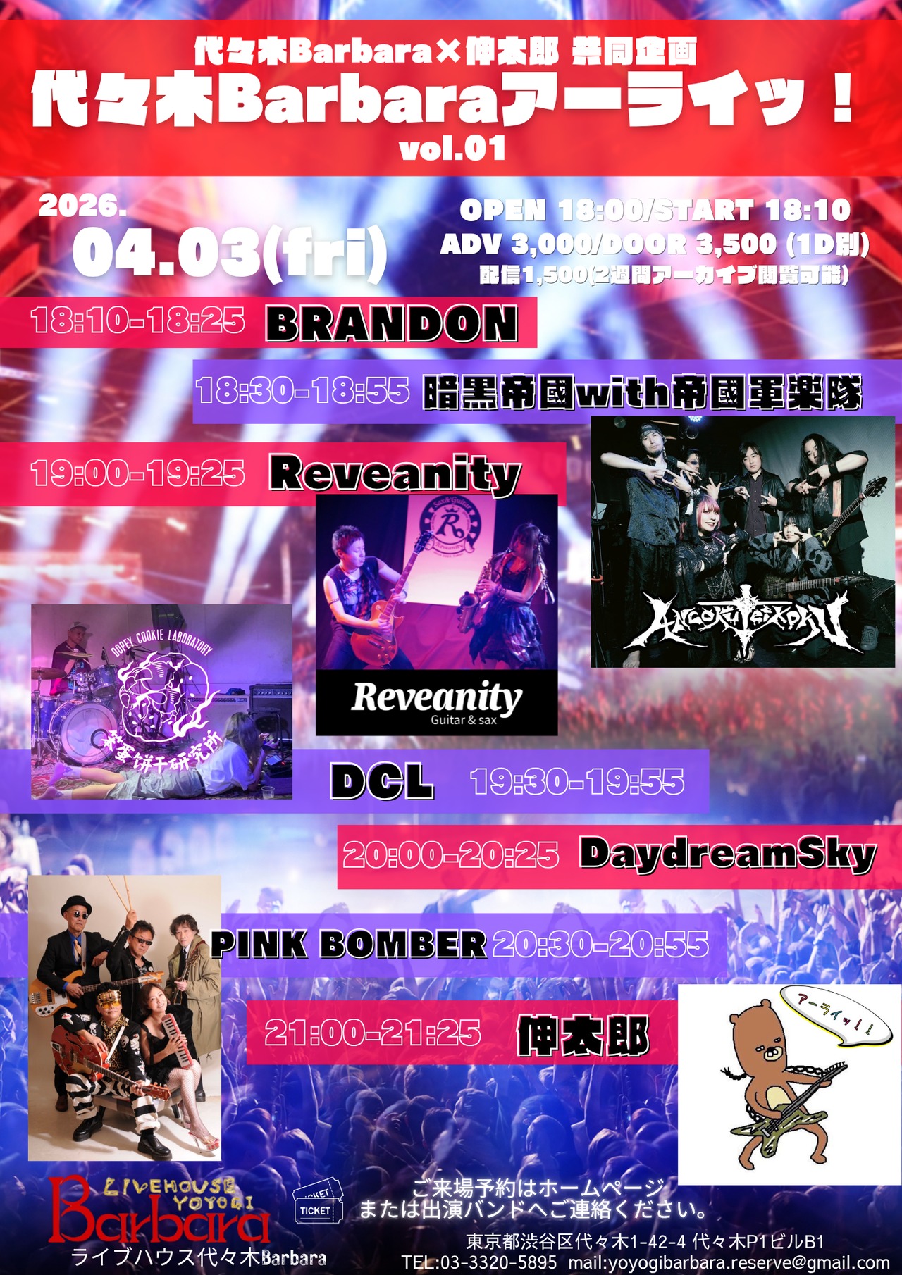 ACT:伸太郎/暗黒帝國with帝國軍楽隊/PINK BOMBER/DCL/Reveanity/Daydream sky/BRANDON(O.A)