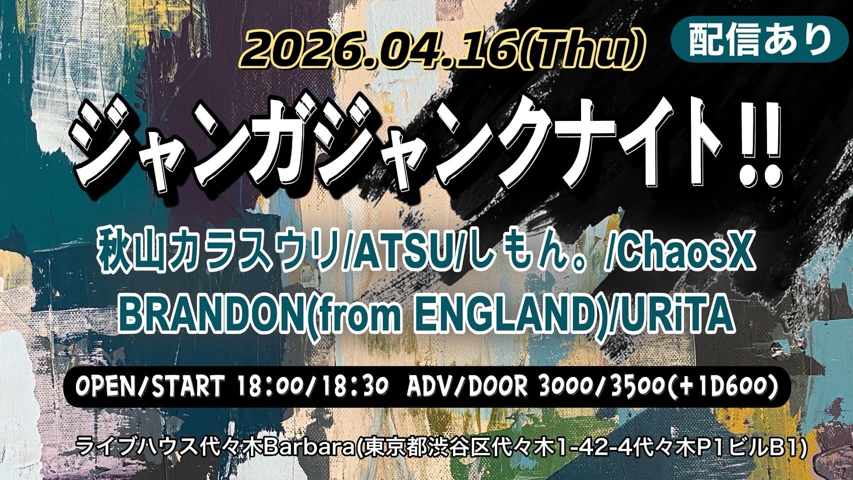 2026.04.16(木) 代々木Barbara presents.「ジャンガジャンクナイト!!」